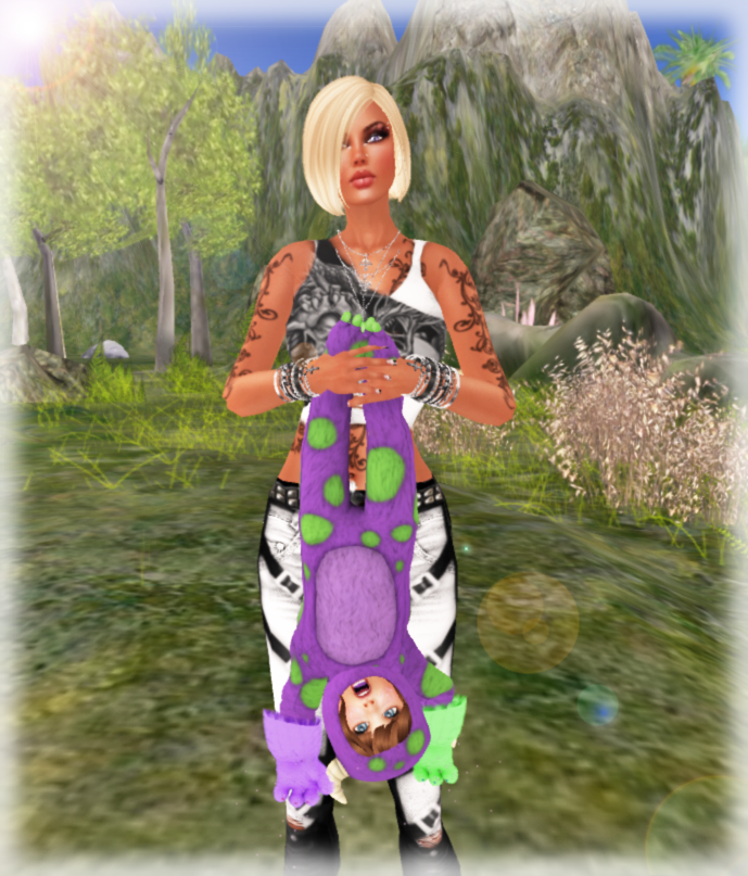 This outfit is so awesome. I love it. My brother has it in blue but there are a few colour choices to choose from besides blue and purple. It was well worth the lindens, the texture work is amazing. It really looks furry! Awesome work. It goes amazingly well with these awesome monster gloves I picked up at the Woodland Gatcha Event.. a very cool offering from Cute Bytes. Great job!